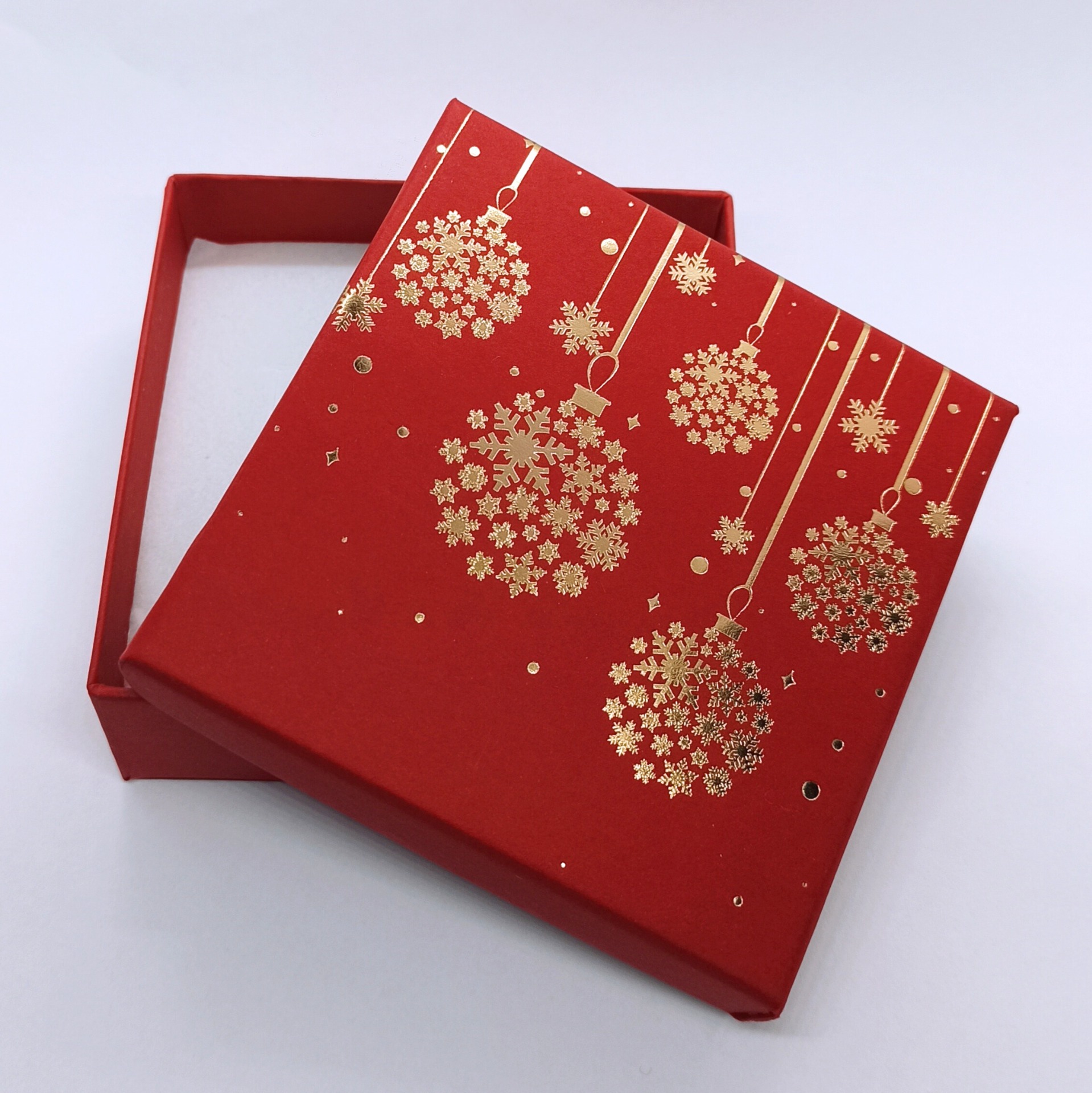 Dárková krabička Vánoční ozdoby červená (8 x 8 x 2,6 cm)